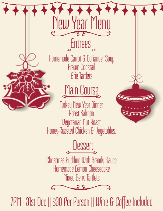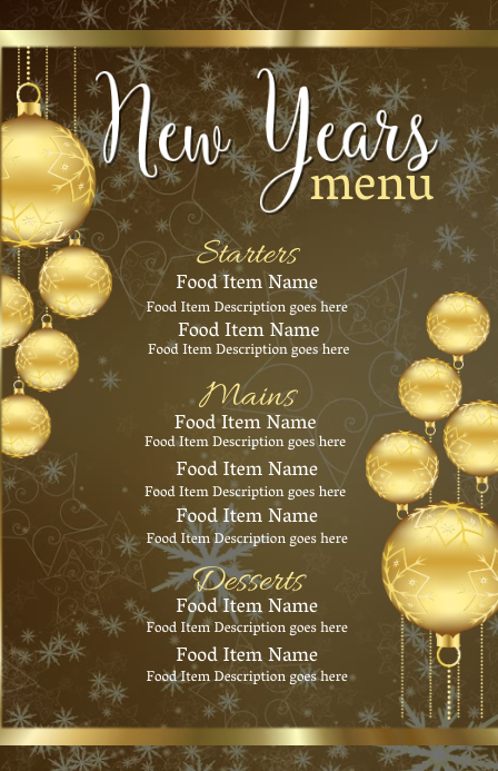 New Years Eve Menu Template. Change the colors using built-in Word themes. Our festive additions can really make your New Year's Eve menu pop! One of the issues that most entrepreneurs leaving afterward initiation in event is the utilization of innovation. while PC move forward may require a huge speculation subsequently beginning; Overtime, if your frameworks are constructed effectively they will in actuality spare you exceptionally huge entireties of cash, specifically in the region of staff compensation.